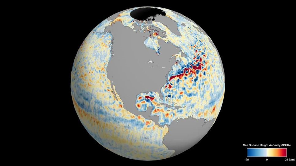 ارتفاعات مختلف سطح دریا در سراسر جهان در این تصویر جدید ثبت شده است، از جمله مناطقی که سطح آب بالاتر از میانگین جهانی ارتفاع سطح دریا به رنگ قرمز و نارنجی و همچنین مناطق کمتر از متوسط به رنگ آبی نشان داده شده است. مقامات ناسا در بیانیه ای اعلام کردند که داده های جمع آوری شده توسط ماهواره توپوگرافی آب های سطحی و اقیانوس ها یکی از دقیق ترین و جامع ترین نماها از آب روی سطح زمین را ارائه می دهد.