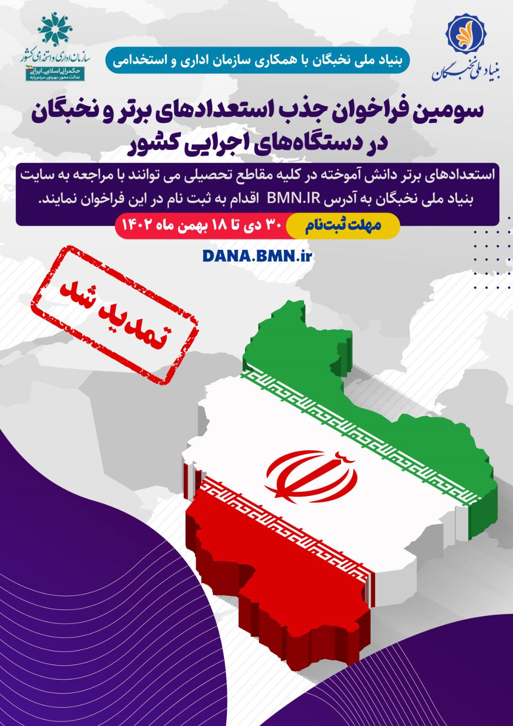 شایان ذکر است: اصلاحیه دفترچه راهنمای سومین فراخوان جذب نخبگان و استعدادهایبرتر در دستگاههای اجرایی کشور را میتوانید از اینجا دریافت کنید.
